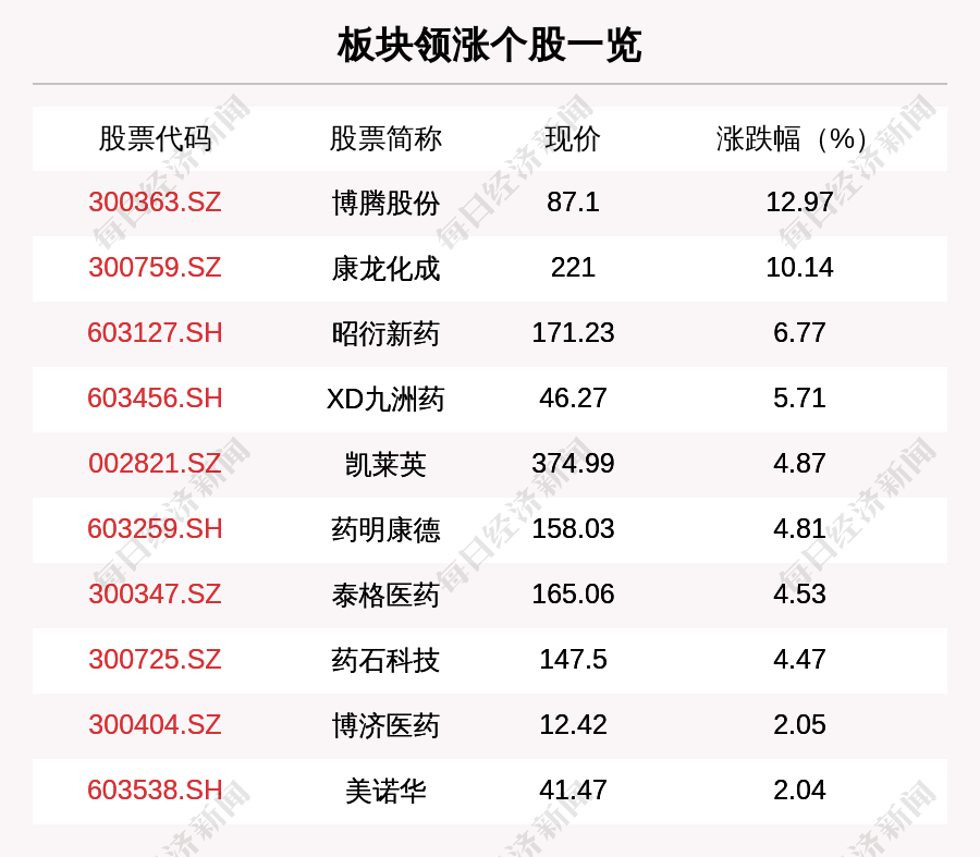 每经AI快讯,CRO/CMO板块走强,板块内14只上涨,3只下跌,博腾股份、康龙化成、昭衍新药分别涨12.97%、10.14%、6.77%。