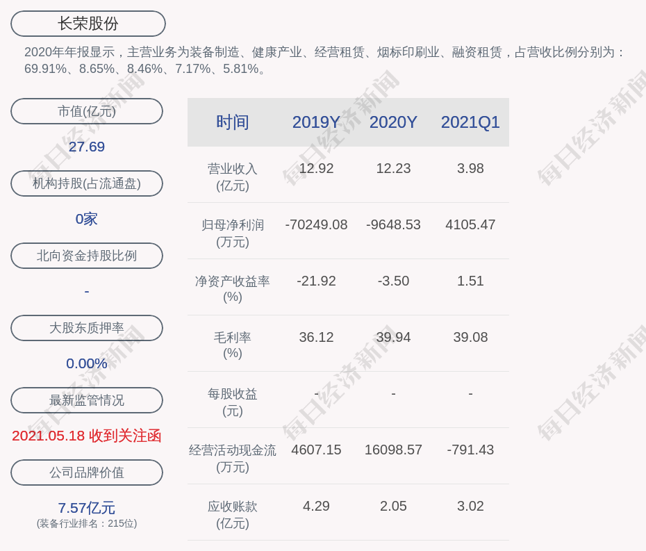 2020年年报显示,长荣股份的主营业务为装备制造、健康产业、经营租赁、烟标印刷业、融资租赁,占营收比例分别为:69.91%、8.65%、8.46%、7.17%、5.81%。