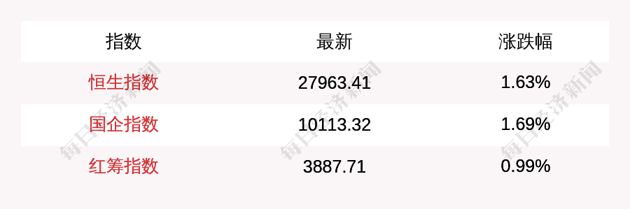 每经AI快讯:北京时间7月13日16:00,恒生指数收盘上涨448.17点,涨幅为1.63%,报收27963.41点;国企指数收盘上涨167.59点,涨幅为1.69%,报收10113.32点;红筹指数收盘上涨38.2点,涨幅为0.99%,报收3887.71点。南向资金当日净流入14.85亿元。