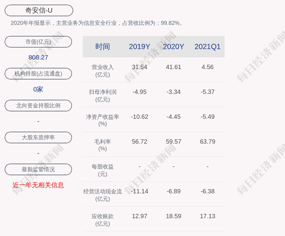 2020年年报显示,奇安信的主营业务为信息安全行业。