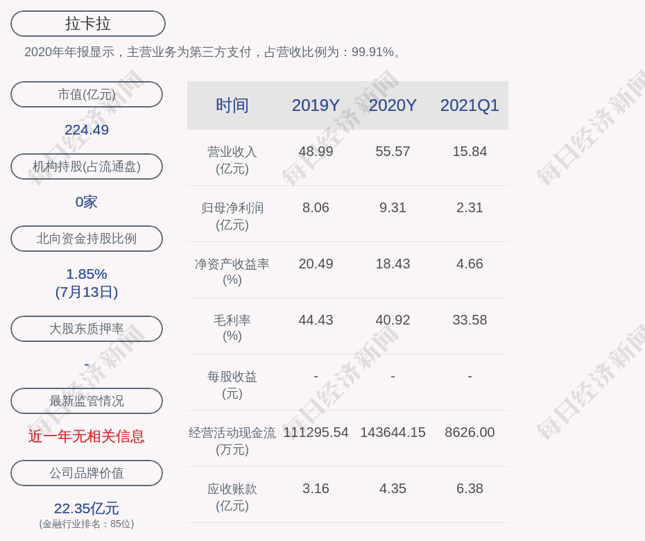 2. 近30日内无机构对拉卡拉进行调研;