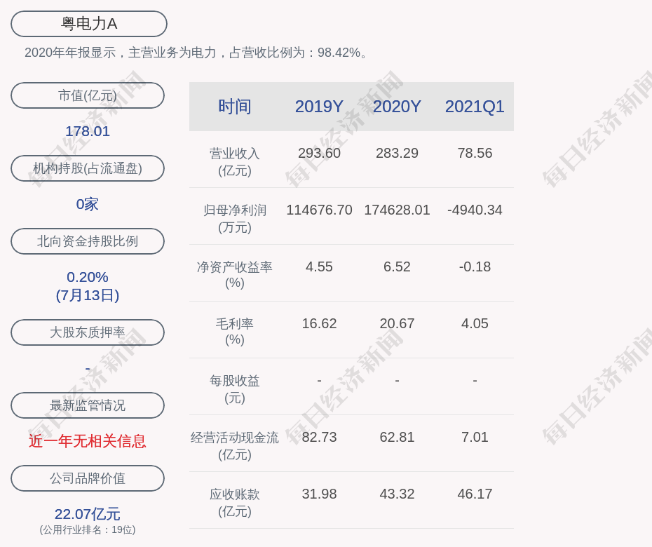 2020年年报显示,粤电力A的主营业务为电力,占营收比例为:98.42%。