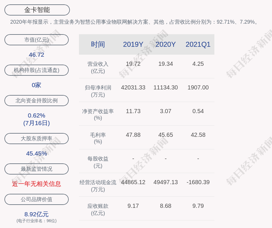 2020年年报显示,金卡智能的主营业务为智慧公用事业物联网解决方案、其他。