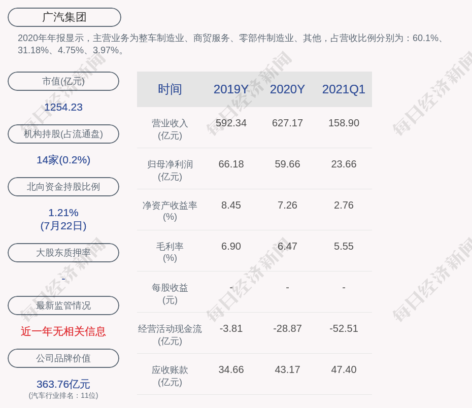 2020年年报显示,广汽集团的主营业务为整车制造业、商贸服务、零部件制造业、其他,占营收比例分别为:60.1%、31.18%、4.75%、3.97%。