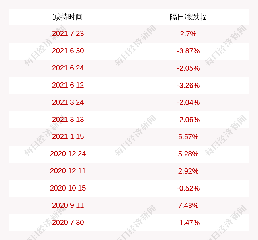 2. 华信新材上次发布减持公告是2021年07月23日,第二个交易日上涨2.7%,华信新材近一年共发布13次减持类公告。更多关键信息,请搜索“道达号”。