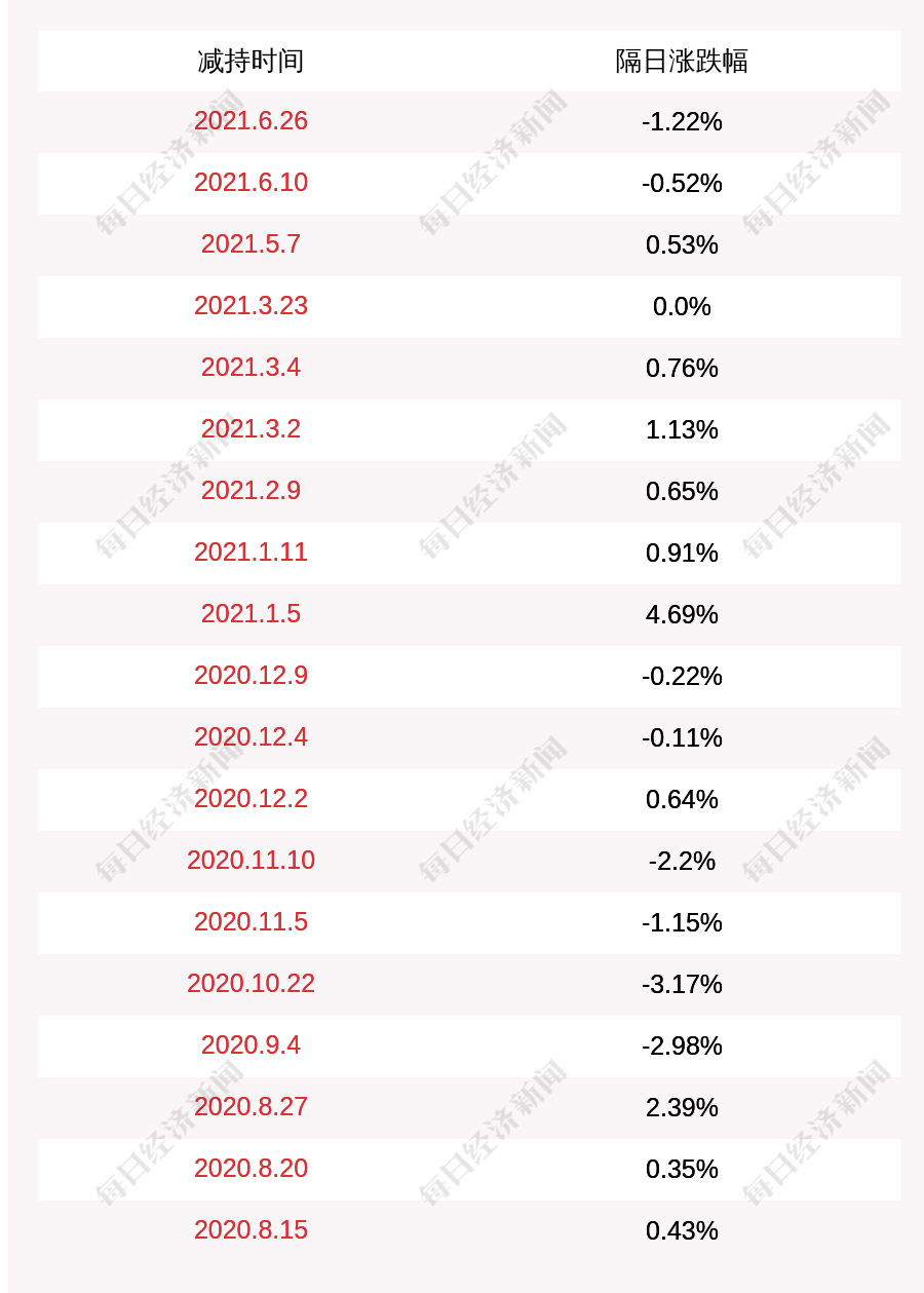 1. 南卫股份上次发布减持公告是2021年06月26日,第二个交易日下跌1.22%,南卫股份近一年共发布20次减持类公告。更多关键信息,请搜索“道达号”。