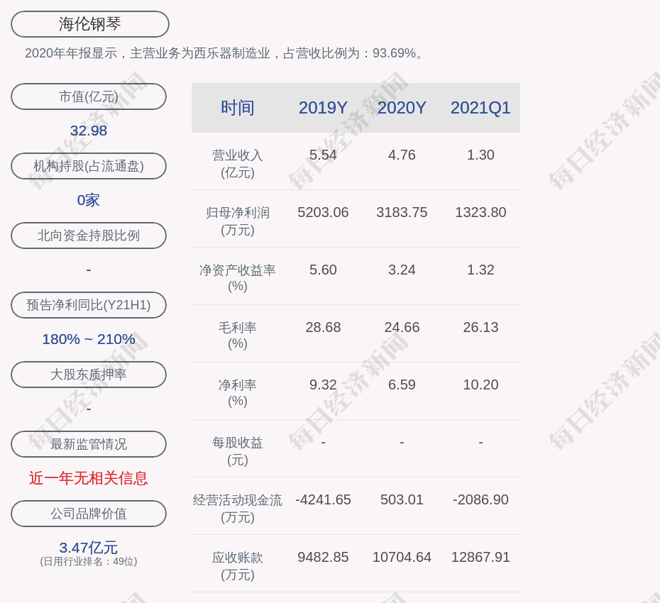 2020年年报显示,海伦钢琴的主营业务为西乐器制造业,占营收比例为:93.69%。