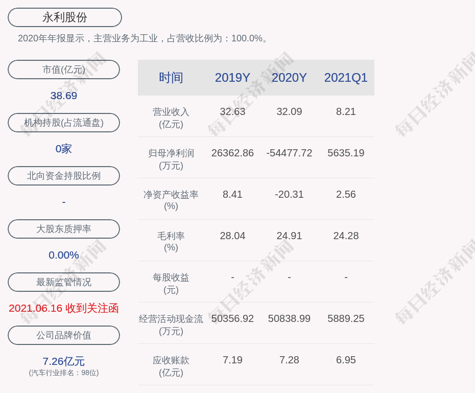 2020年年报显示,永利股份的主营业务为工业,占营收比例为:100.0%。