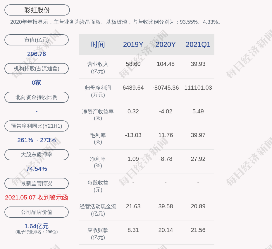 2020年年报显示,彩虹股份的主营业务为液晶面板、基板玻璃,占营收比例分别为:93.55%、4.33%。
