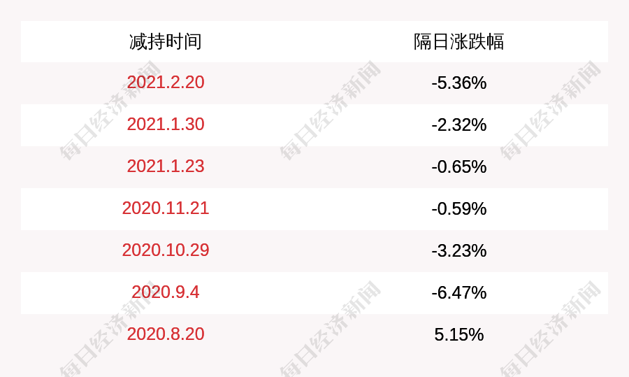 3. 桃李面包上次发布减持公告是2021年02月20日,第二个交易日下跌5.36%,桃李面包近一年共发布8次减持类公告。更多关键信息,请搜索“道达号”。