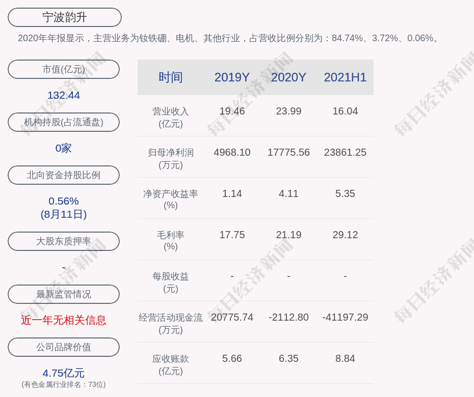 3. 宁波韵升在近3个交易日上涨33.23%,所属有色金属板块同期上涨3.06%,上证指数同期上涨0.86%。更多关键信息,请搜索“道达号”。