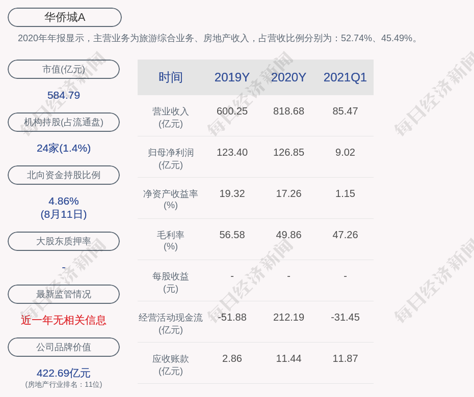 2. 近30日内共有1批机构对华侨城A调研,合计调研的机构家数为1家。更多关键信息,请搜索“道达号”。