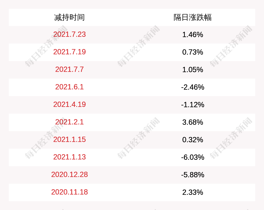 3. 钢研高纳上次发布减持公告是2021年07月23日,第二个交易日上涨1.46%,钢研高纳近一年共发布11次减持类公告。更多关键信息,请搜索“道达号”。