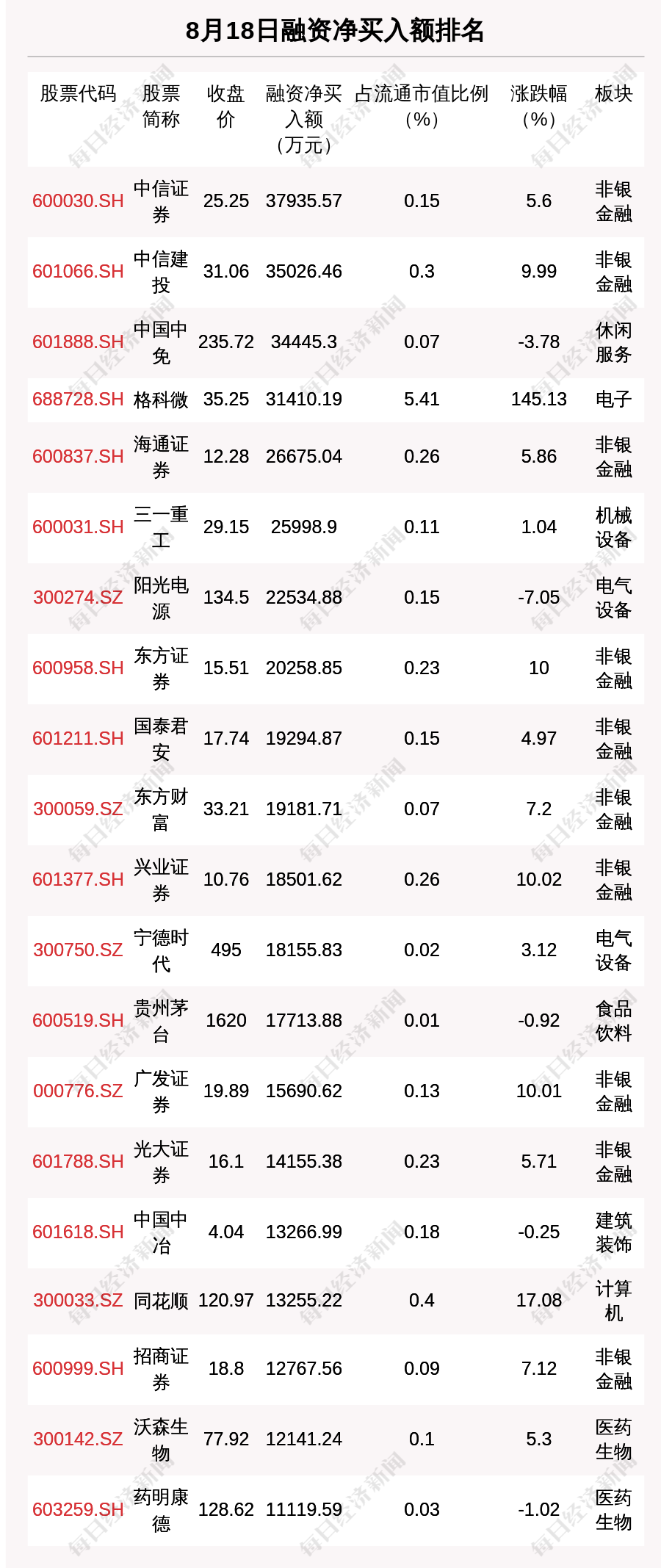 从融资资金净买入金额来看,共有21只个股净买入金额超亿元,其中中信证券、中信建投、中国中免排名前三,买入金额分别为3.79亿元、3.5亿元、3.44亿元。