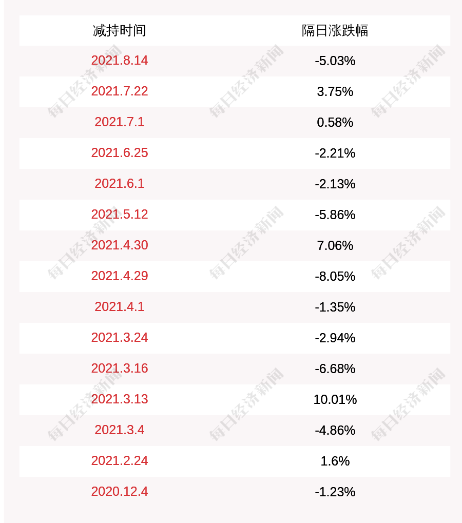 3. 焦作万方上次发布减持公告是2021年08月14日,第二个交易日下跌5.03%,焦作万方近一年共发布16次减持类公告。更多关键信息,请搜索“道达号”。