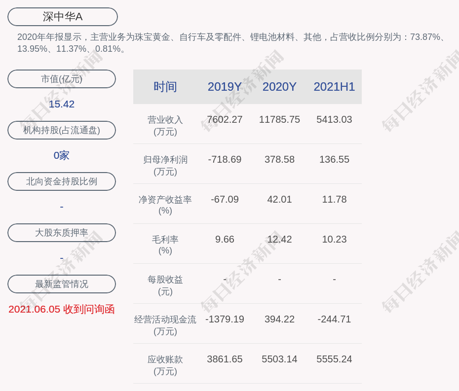 2020年年报显示,深中华A的主营业务为珠宝黄金、自行车及零配件、锂电池材料、其他。