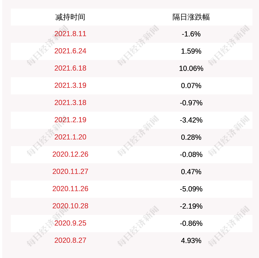 3. 捷佳伟创上次发布减持公告是2021年08月11日,第二个交易日下跌1.6%,捷佳伟创近一年共发布14次减持类公告。更多关键信息,请搜索“道达号”。