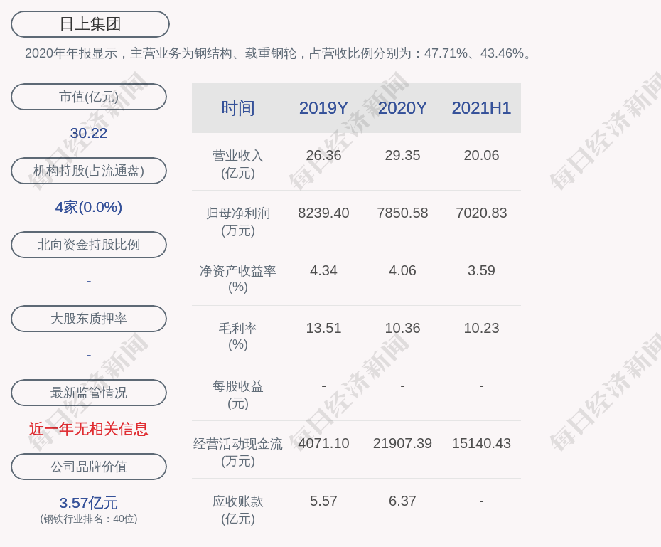 2020年年报显示,日上集团的主营业务为钢结构、载重钢轮,占营收比例分别为:47.71%、43.46%。
