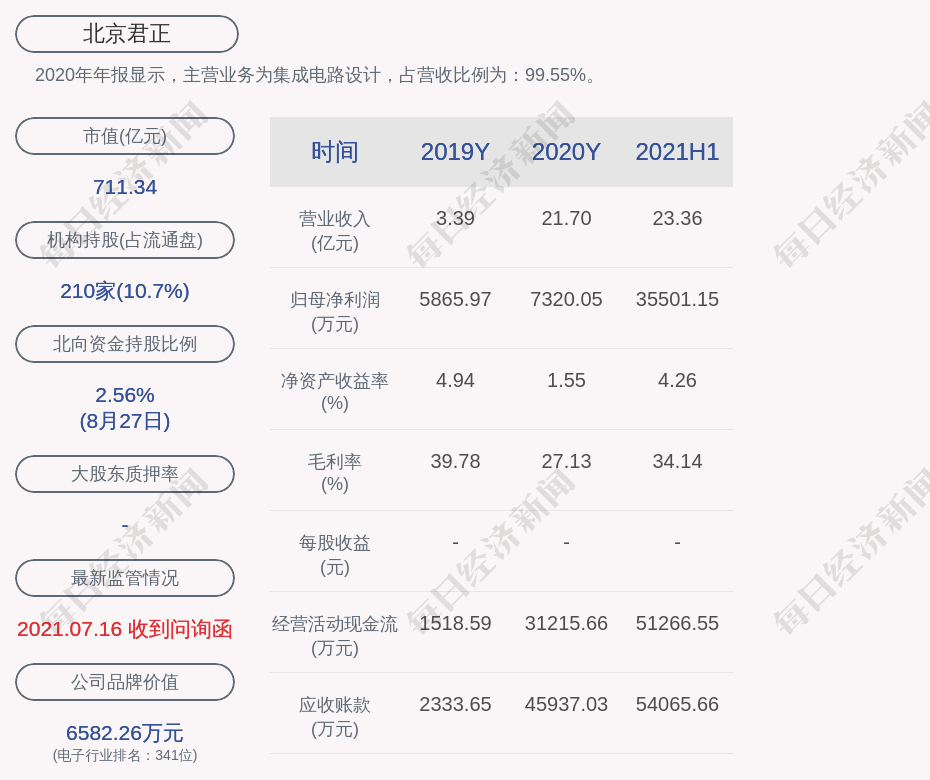 每经AI快讯,北京君正(SZ 300223,收盘价:151.68元)8月30日下午发布半年度业绩报告称,2021年上半年营业收入约23.36亿元,同比增加558.46%;归属于上市公司股东的净利润盈利约3.55亿元,同比增加2994.8%;基本每股收益盈利0.757元,同比增加1232.75%。
