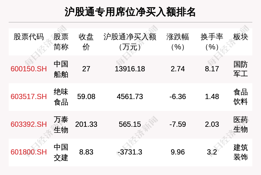 在龙虎榜中,涉及沪股通专用席位的个股有4只,中国船舶的沪股通专用席位净买入额最大,净买入1.39亿元。