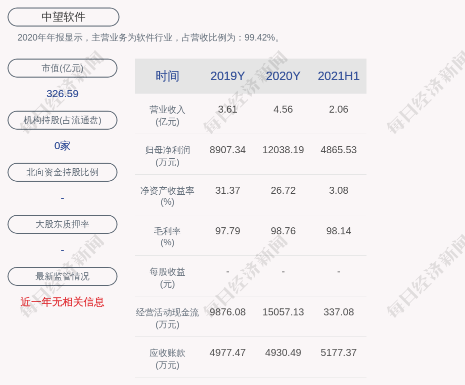 2020年年报显示,中望软件的主营业务为软件行业,占营收比例为:99.42%。