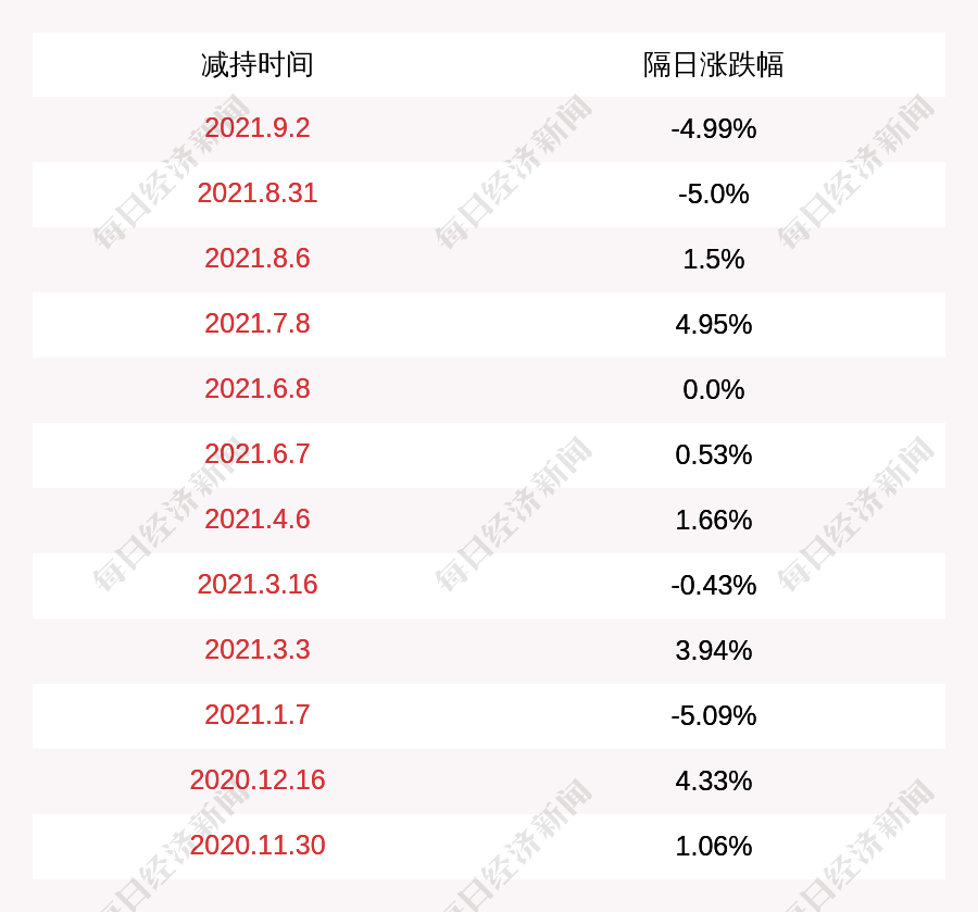 3. ST华钰上次发布减持公告是2021年09月02日,第二个交易日下跌4.99%,ST华钰近一年共发布13次减持类公告。更多关键信息,请搜索“道达号”。