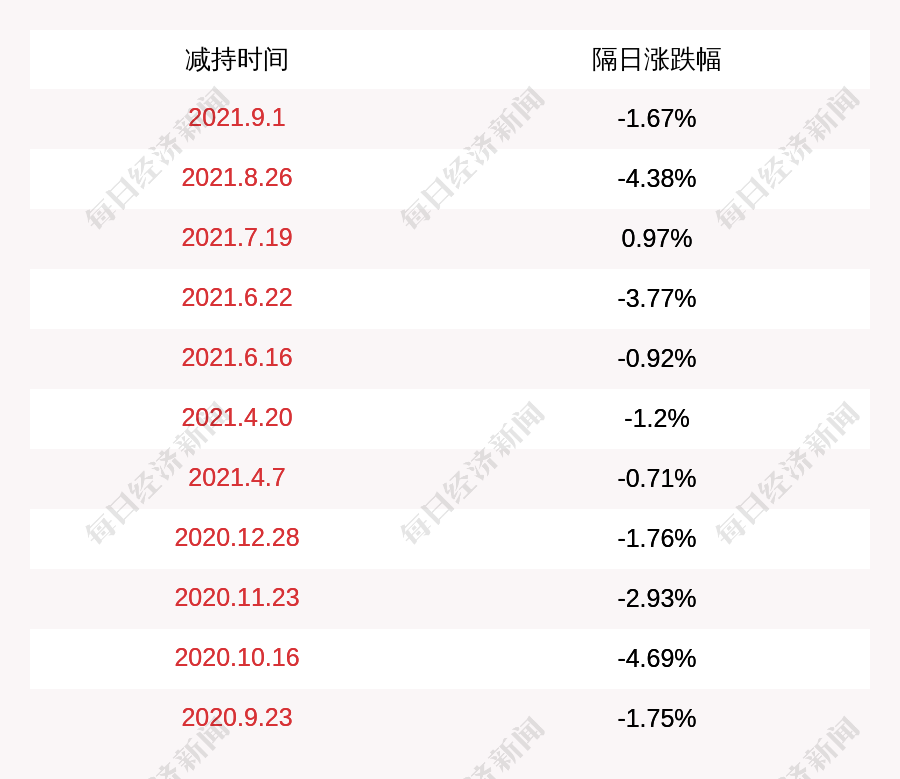 3. 爱乐达上次发布减持公告是2021年09月01日,第二个交易日下跌1.67%,爱乐达近一年共发布12次减持类公告。更多关键信息,请搜索“道达号”。