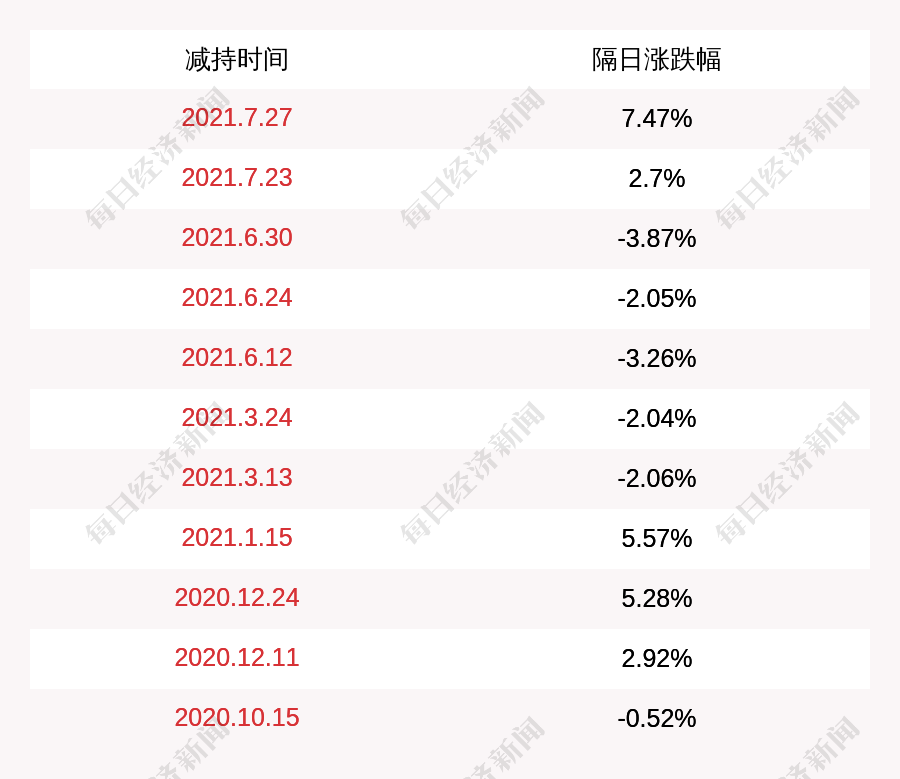 2. 华信新材上次发布减持公告是2021年07月27日,第二个交易日上涨7.47%,华信新材近一年共发布12次减持类公告。更多关键信息,请搜索“道达号”。
