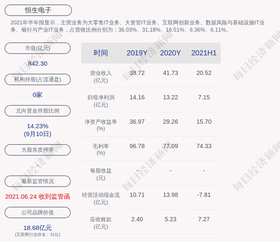 3. 恒生电子上次发布减持公告是2021年06月10日,第二个交易日下跌1.31%,恒生电子近一年共发布4次减持类公告。更多关键信息,请搜索“道达号”。