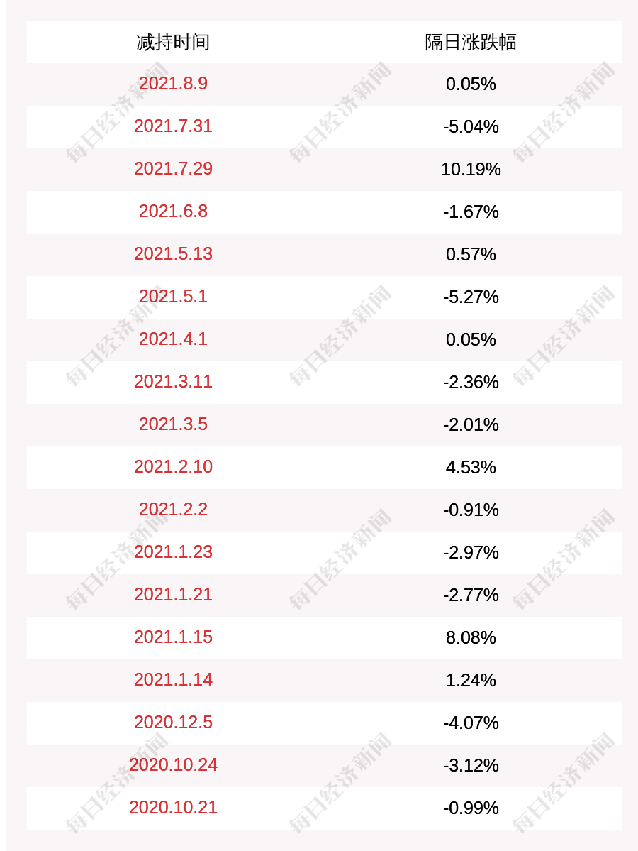 2. 世名科技上次发布减持公告是2021年08月09日,第二个交易日上涨0.05%,世名科技近一年共发布19次减持类公告。更多关键信息,请搜索“道达号”。