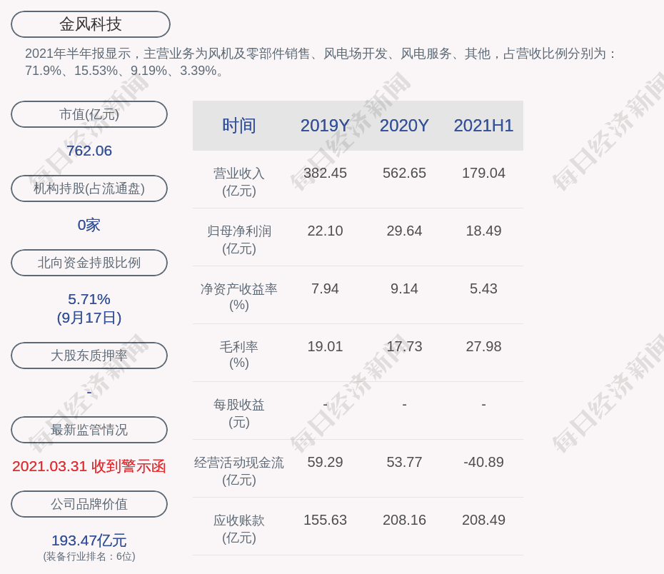 每经AI快讯,金风科技(SZ 002202,收盘价:18.95元)9月21日晚间发布公告称,本公司于2021年9月18日收到本公司股东和谐健康出具的《关于