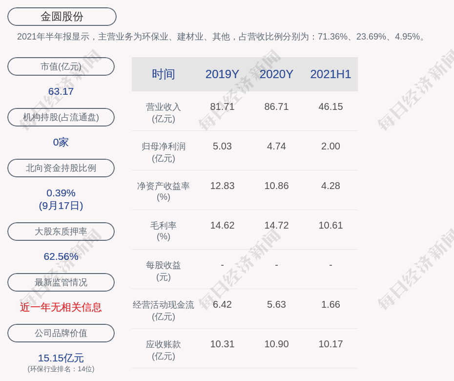 2021年半年报显示,金圆股份的主营业务为环保业、建材业、其他。