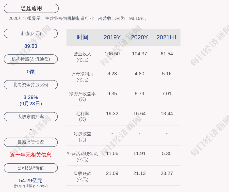 2020年年报显示,隆鑫通用的主营业务为机械制造行业,占营收比例为:98.15%。