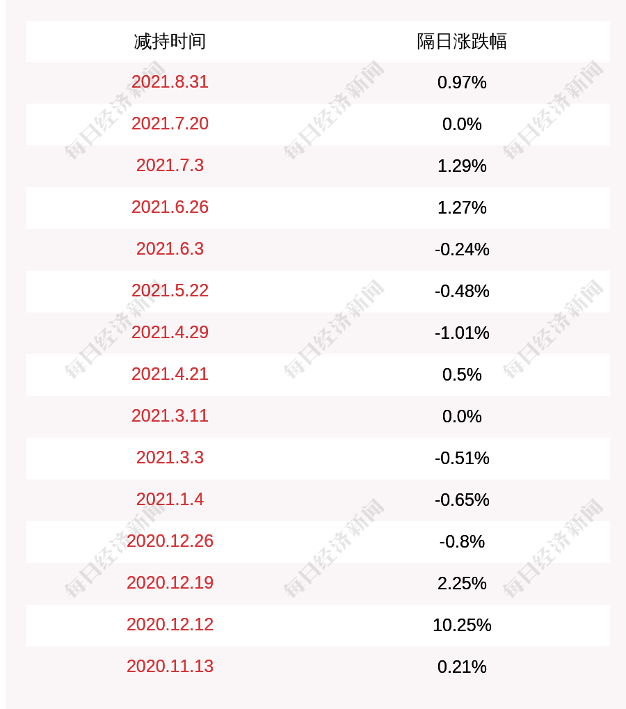 2. 梦洁股份上次发布减持公告是2021年08月31日,第二个交易日上涨0.97%,梦洁股份近一年共发布16次减持类公告。更多关键信息,请搜索“道达号”。