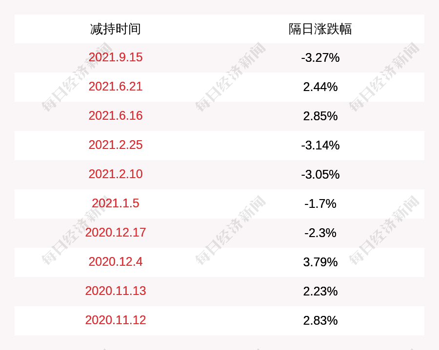 3. 西部超导上次发布减持公告是2021年09月15日,第二个交易日下跌3.27%,西部超导近一年共发布11次减持类公告。更多关键信息,请搜索“道达号”。