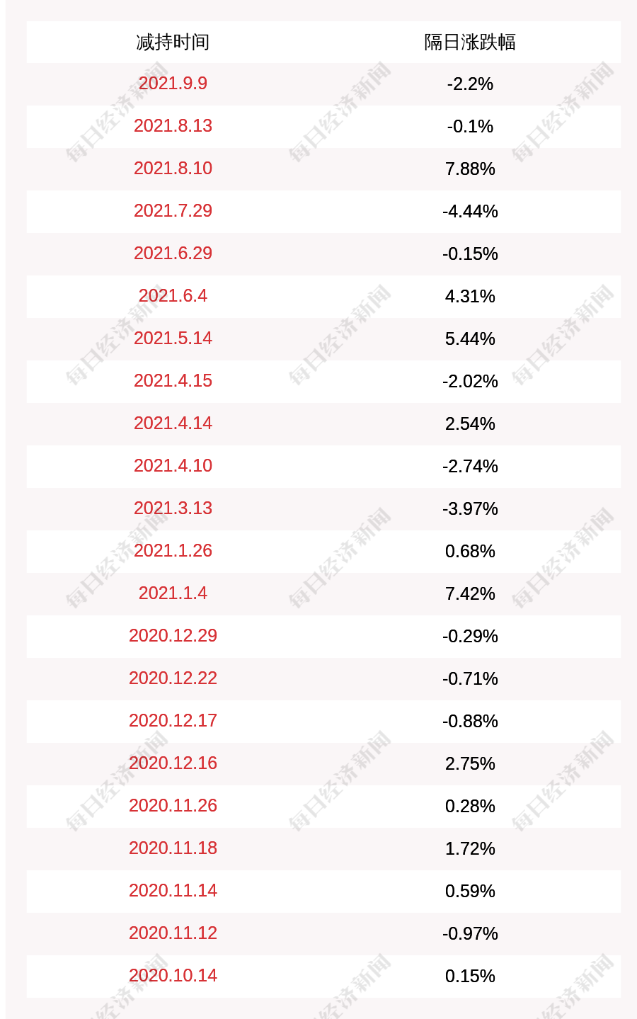 3. 昭衍新药上次发布减持公告是2021年09月09日,第二个交易日下跌2.2%,昭衍新药近一年共发布23次减持类公告。更多关键信息,请搜索“道达号”。
