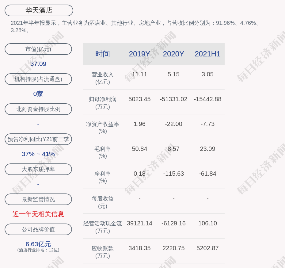 2021年半年报显示,华天酒店的主营业务为酒店业、其他行业、房地产业,占营收比例分别为:91.96%、4.76%、3.28%。