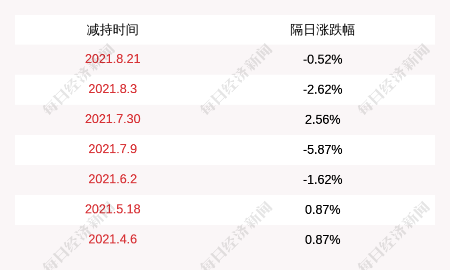 3. 杭州银行上次发布减持公告是2021年08月21日,第二个交易日下跌0.52%,杭州银行近一年共发布8次减持类公告。更多关键信息,请搜索“道达号”。