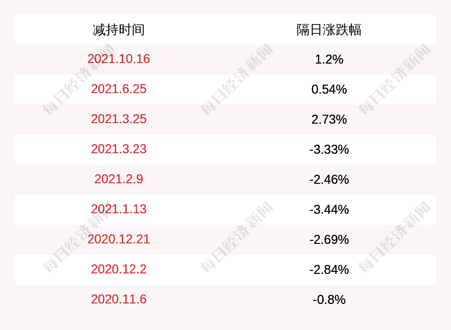 3. 航天彩虹上次发布减持公告是2021年10月16日,第二个交易日上涨1.2%,航天彩虹近一年共发布10次减持类公告。更多关键信息,请搜索“道达号”。