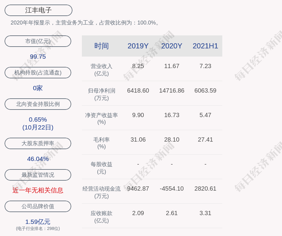 2020年年报显示,江丰电子的主营业务为工业,占营收比例为:100.0%。
