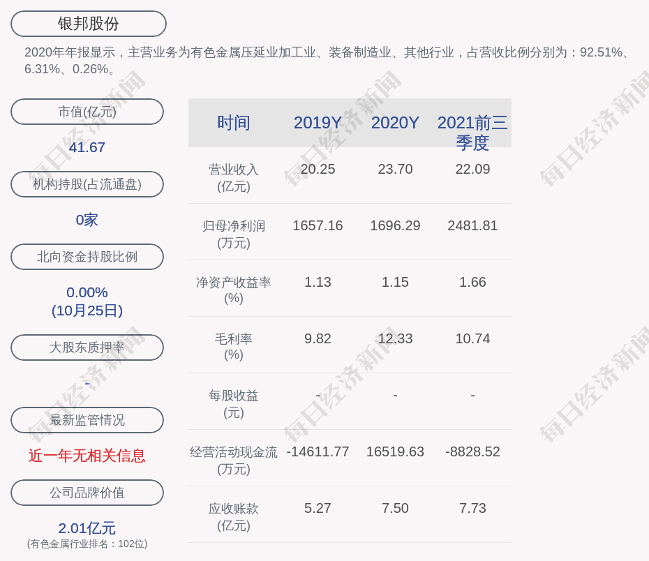 2. 近30日内无机构对银邦股份进行调研。更多关键信息,请搜索“道达号”。