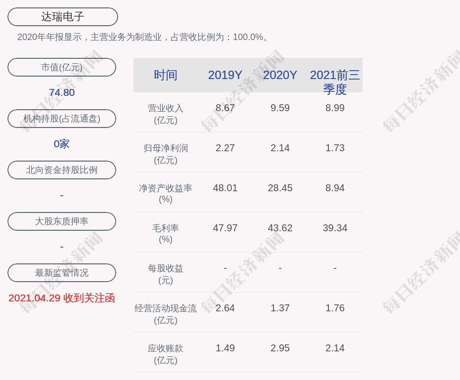 1. 近30日内无机构对达瑞电子进行调研。更多关键信息,请搜索“道达号”。