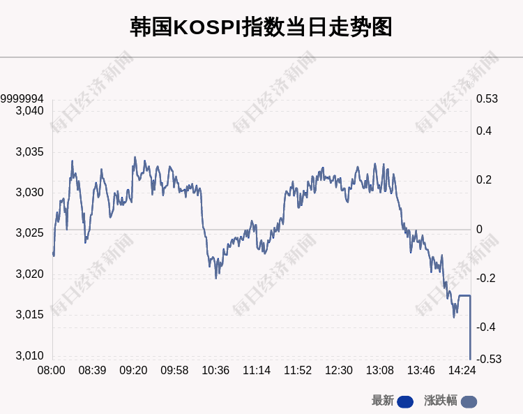 每经AI快讯:北京时间10月28日14:00,韩国KOSPI指数收盘下跌15.94点,跌幅为0.53%,报3009.55点。