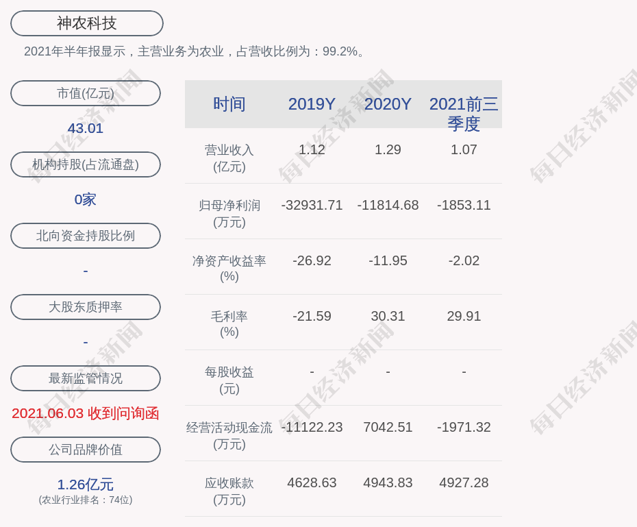 2021年半年报显示,神农科技的主营业务为农业,占营收比例为:99.2%。
