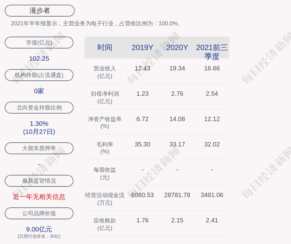 2021年半年报显示,漫步者的主营业务为电子行业,占营收比例为:100.0%。