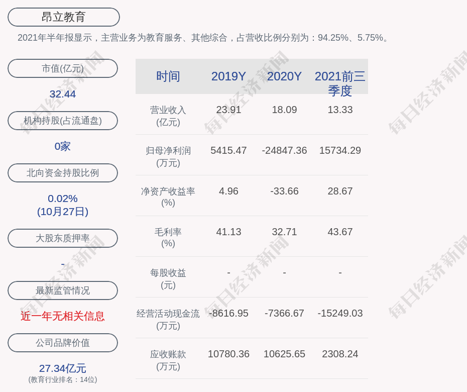2021年半年报显示,昂立教育的主营业务为教育服务、其他综合,占营收比例分别为:94.25%、5.75%。