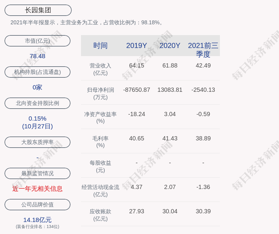 2021年半年报显示,长园集团的主营业务为工业,占营收比例为:98.18%。