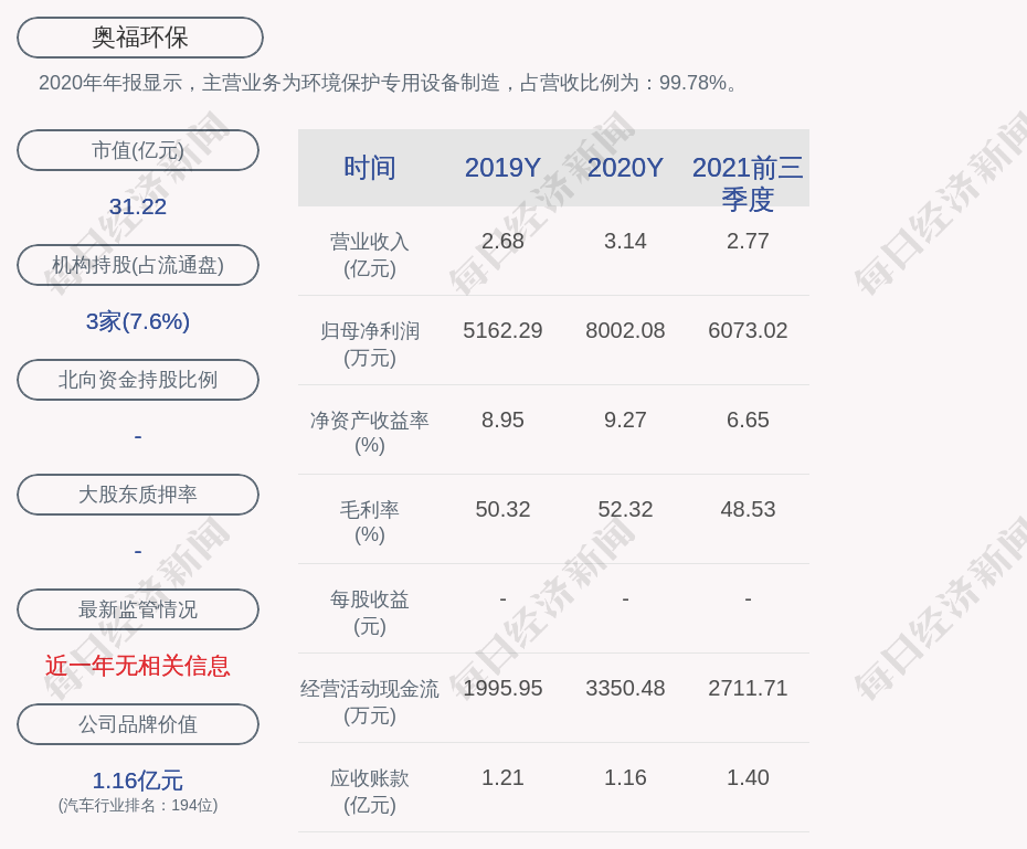 1. 近30日内无机构对奥福环保进行调研;