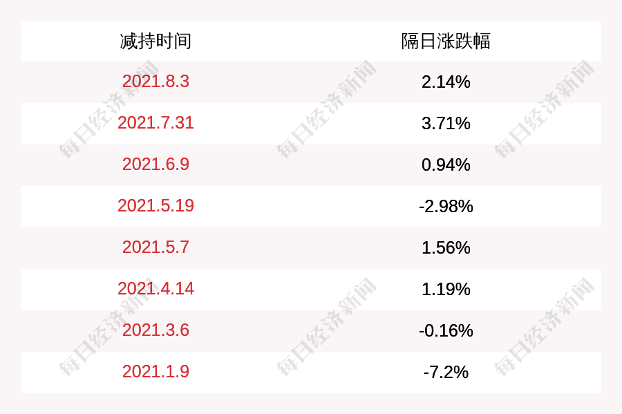 2. 佳力图上次发布减持公告是2021年08月03日,第二个交易日上涨2.14%,佳力图近一年共发布9次减持类公告。更多关键信息,请搜索“道达号”。