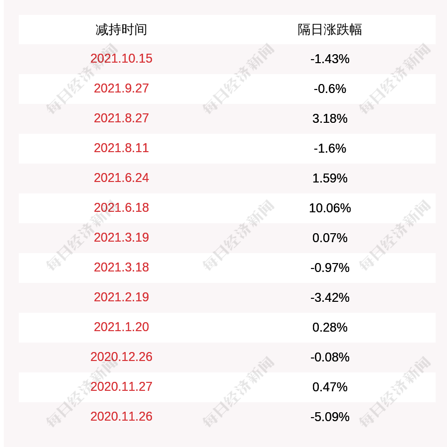3. 捷佳伟创上次发布减持公告是2021年10月15日,第二个交易日下跌1.43%,捷佳伟创近一年共发布14次减持类公告。更多关键信息,请搜索“道达号”。